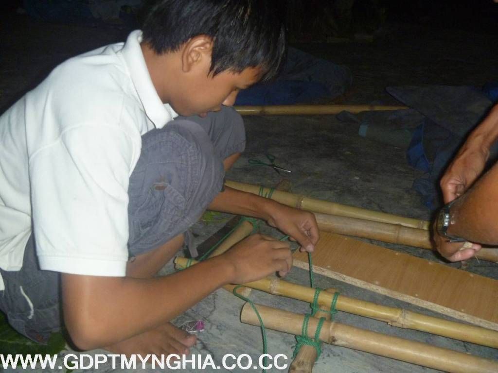 vì không thể lên đất trại sớm để làm cổng trại, anh em Thiếu Nam tranh thủ làm trước ở nhà