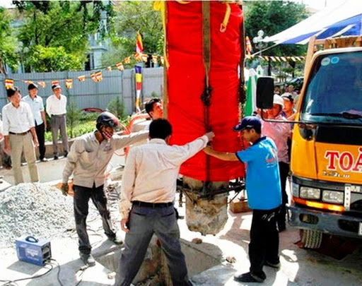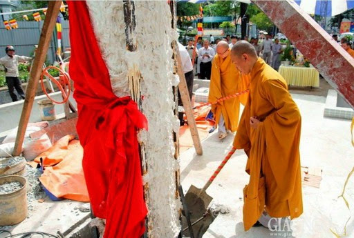 Qúy vị đại diện lấp tượng trưng nền móng tượng đài trong lễ An Vị.